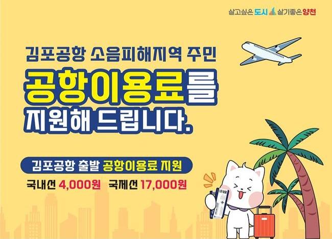 지원 대상은 공항 이용일과 신청일 기준 공항소음대책지역 및 인근지역에 거주하는 양천구민이다. 해당 지역에 외국인 등록이 돼 있고 신청일 기준 구에 체류 중인 외국인도 포함된다.