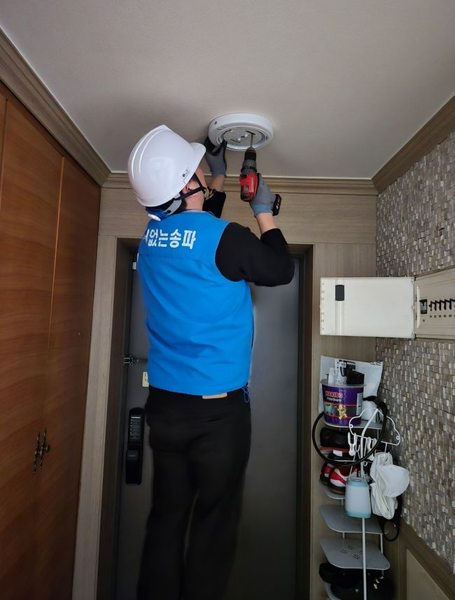 송파구 취약계층 봉사활동.30일 서울 송파구(구청장 서강석)는 겨울철 생활안전 강화를 위해 관내 취약계층 가구와 복지시설을 대상으로 고효율 LED 조명 교체 사업을 완료했다고 밝혔다. 구는 에너지 비용 부담 완화를 위해 기초생활수급자와 차상위계층, 복지 사각지대까지 대상을 확대해 지원했다.