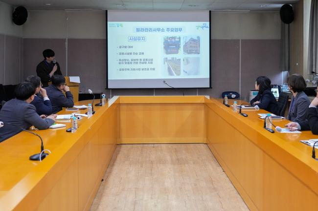이날 방문단은 빌라관리사무소 사업 설명을 들은 뒤 번1동 빌라관리사무소 현장을 직접 둘러보는 시간을 가졌다.