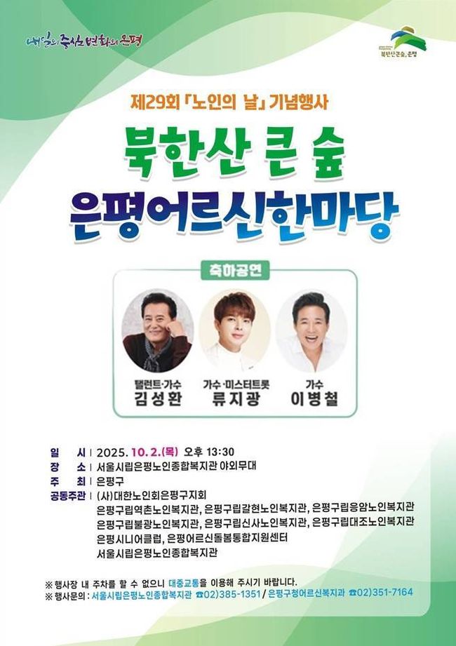이번 행사는 은평구가 주최하고 은평구노인복지연합회와 (사)대한노인회 은평구지회가 공동으로 주관하며, 매년 10월 2일 노인의 날을 기려 노인 공경의 가치를 지역사회에 확산하기 위해 마련됐다.